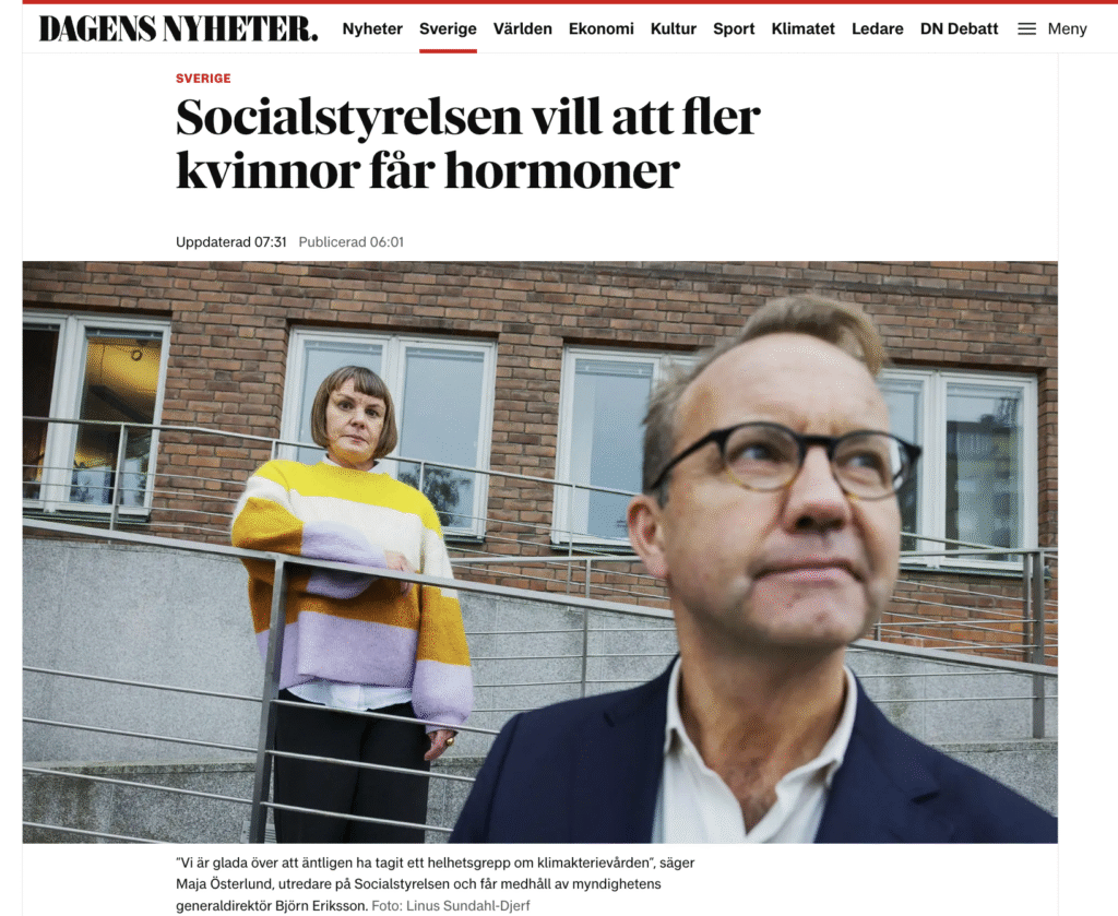 Här kan ni läsa artikeln: https://www.dn.se/sverige/socialstyrelsen-vill-att-fler-kvinnor-far-hormoner/